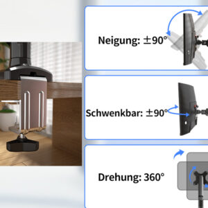 Monitorarme für flexible Bildschirmpositionierung. Mit einem Monitorarm lässt sich der Bildschirm individuell ausrichten, um Platz zu sparen und die Ergonomie am Schreibtisch zu verbessern.