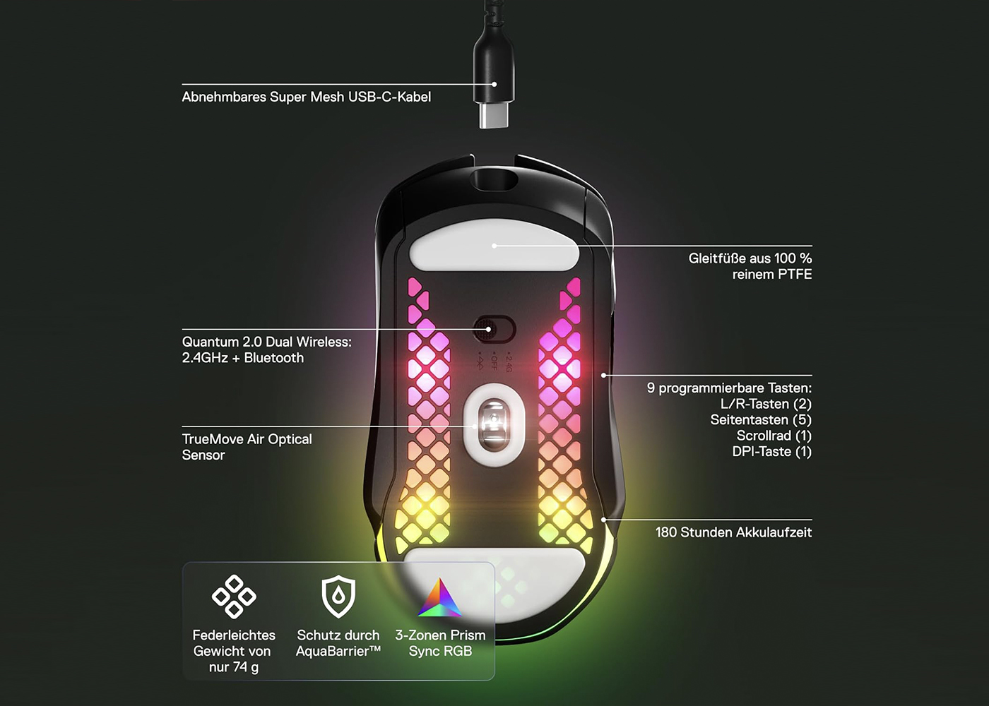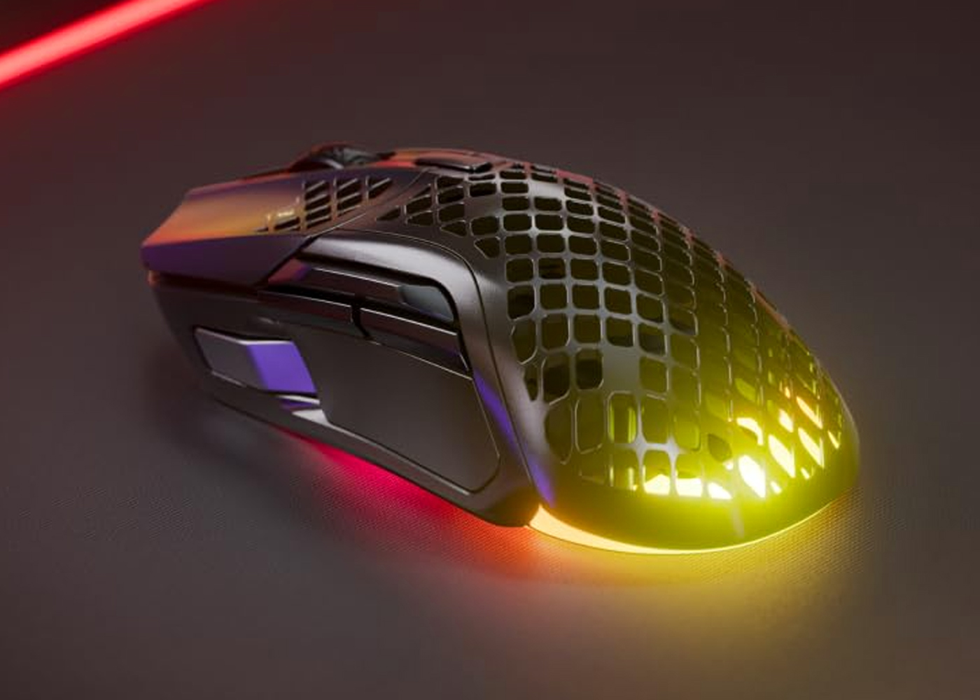 Die SteelSeries Aerox 5 Wireless ist die perfekte Gaming-Maus für anspruchsvolle Spieler, die maximale Geschwindigkeit, Präzision und Flexibilität erwarten. Mit ihrem federleichten Design von nur 74 Gramm, der innovativen Oberfläche mit strategisch platzierten Öffnungen und der brillanten PrismSync RGB-Beleuchtung setzt sie neue Maßstäbe im Wireless-Gaming.